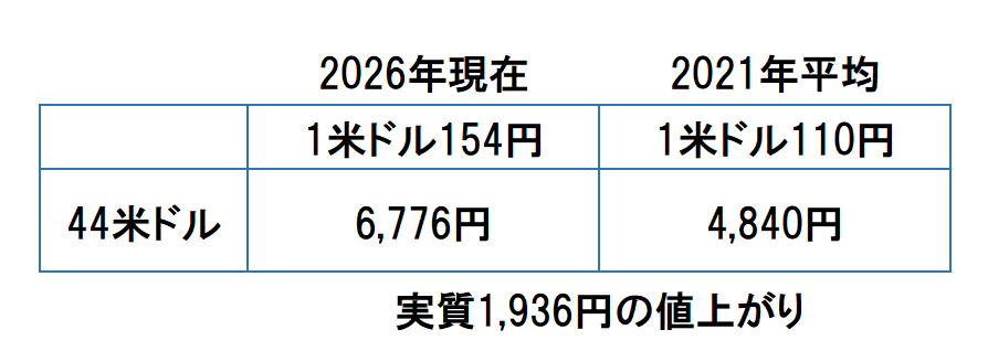 設定料金は変わらないのに、為替で高く感じるのが実情です。